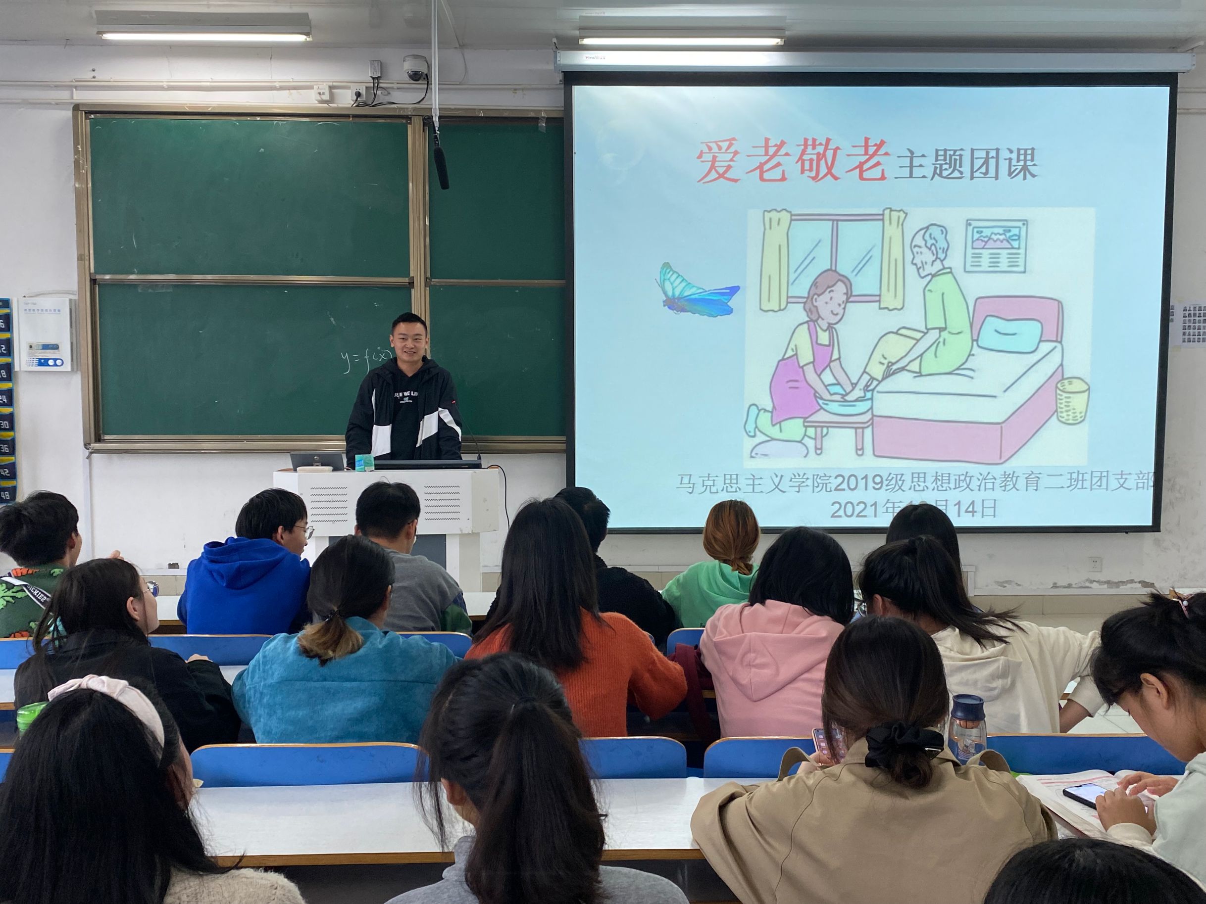 九九重阳至,浓浓敬老情。10月14日上午,七大罪 2019级思想政治教育二班于社科楼516教室召开“爱老敬老”主题团课。2019级思想政治教育二班全体学生共同参会。会议由卫生委员刘鹏主持。