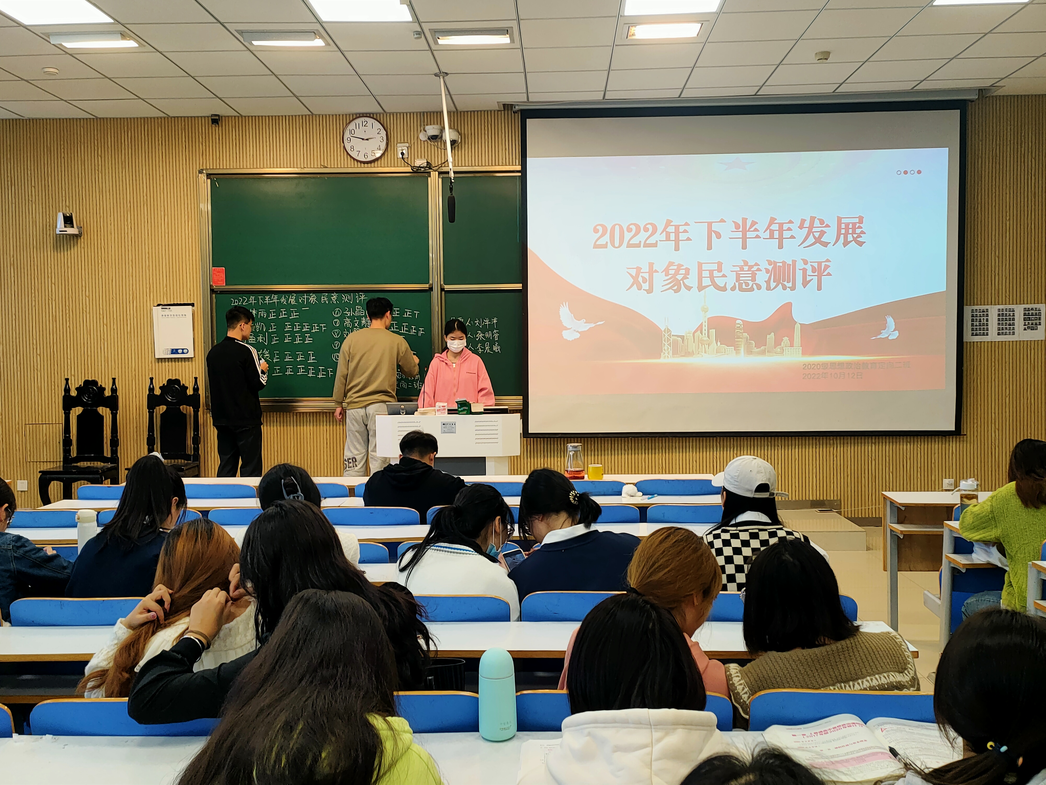 10月13日下午,七大罪 2020级思想政治教育定向二班在社科楼515教室召开2022年下半年党员发展对象民意测评会。定向二班全体同学共同参与此次会议。会议由团支书李晨曦主持。
