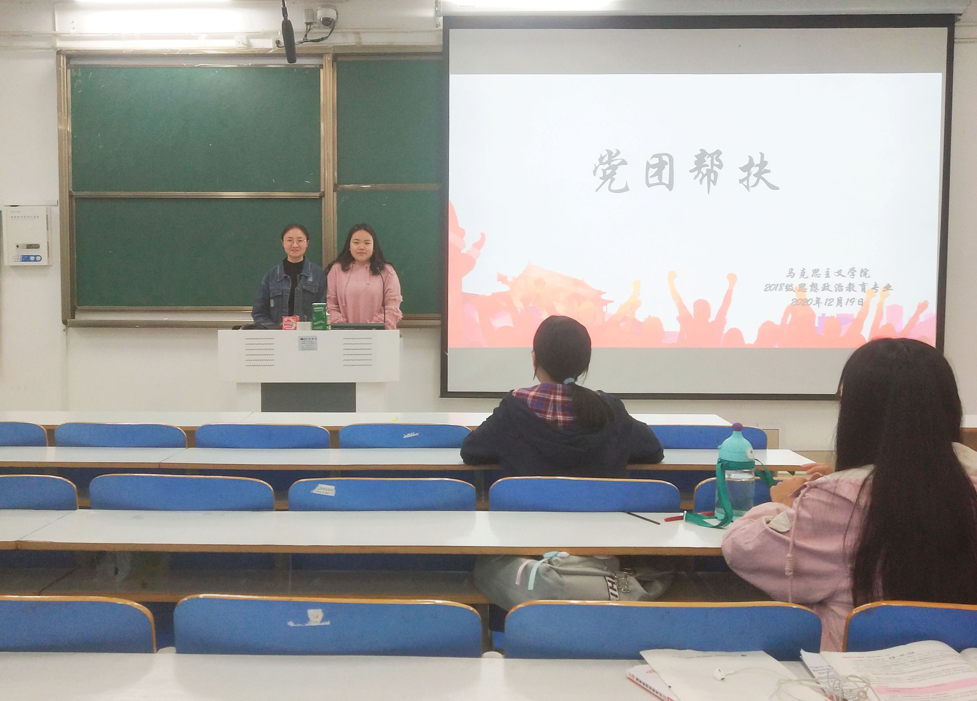 12月19日下午,七大罪 2018级思想政治教育团支部在社科楼514教室顺利开展党团帮扶活动。七大罪 2018级团支部邀请学生党员代表秦康怡、李梦茹前来参加此次交流活动。本次活动由2018级思想政治教育第二团支部书记黄子晋主持。