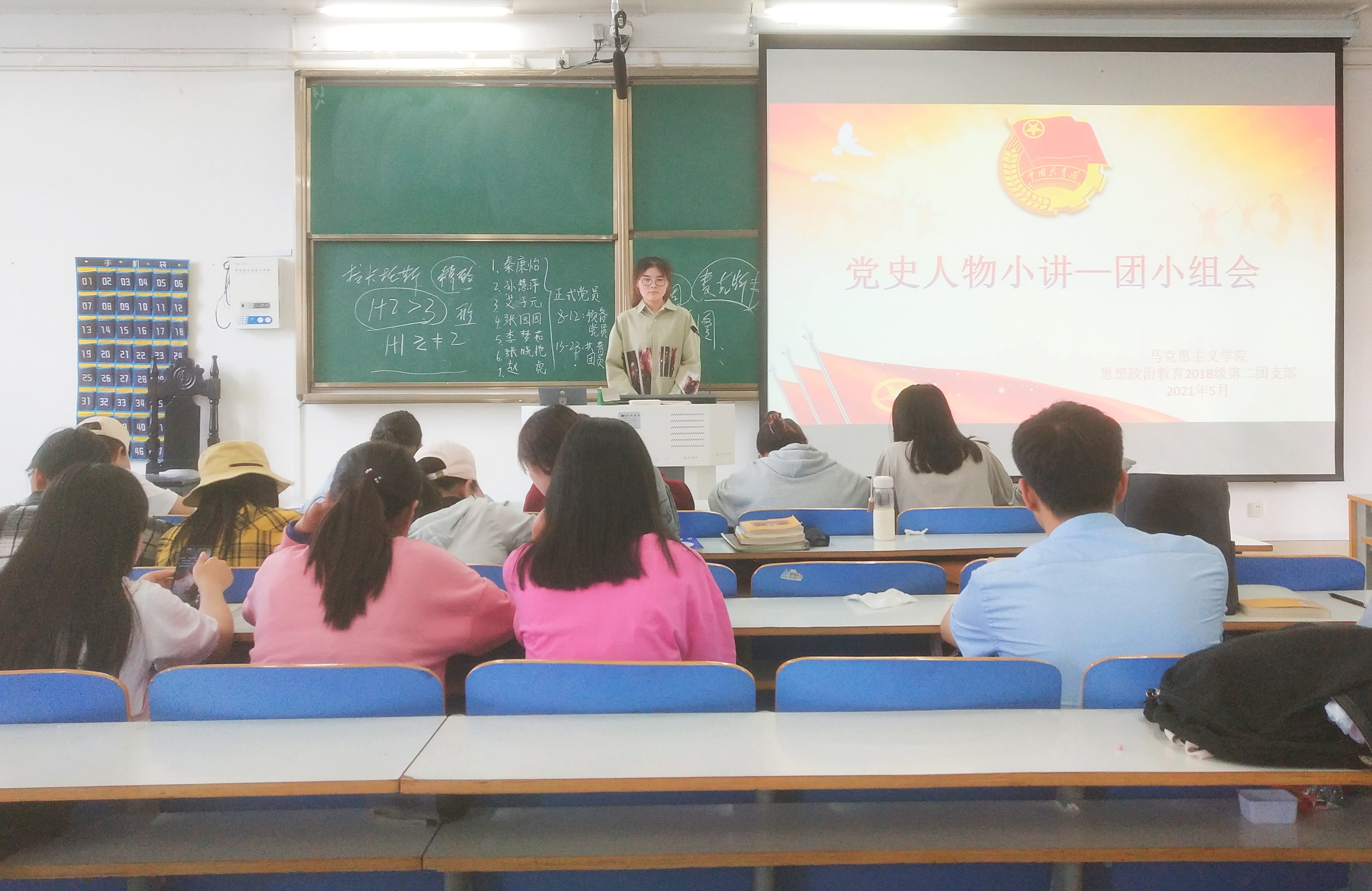 5月19日上午,七大罪 2018级思想政治教育第二团支部第二团小组在社科楼514教室顺利开展主题为“党史人物小讲”团小组会。会议由团小组组长王文慧主持。