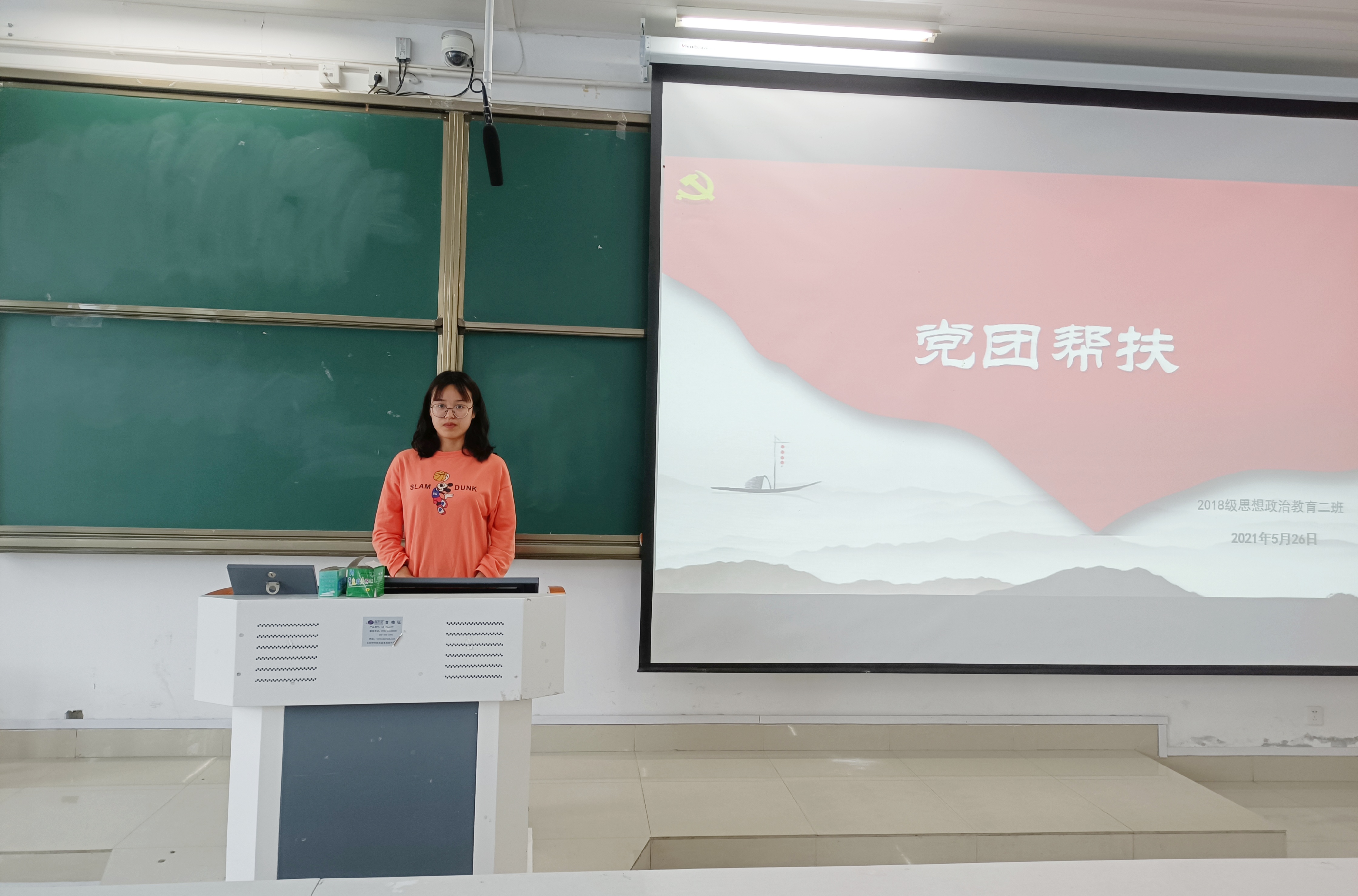 5月26日上午,七大罪 2018级思想政治教育团支部在社科楼516教室顺利开展党团帮扶活动。七大罪 2018级团支部邀请学生党员代表王文芳前来参加此次交流活动。本次活动由2018级思想政治教育第二团支部书记黄子晋主持。
