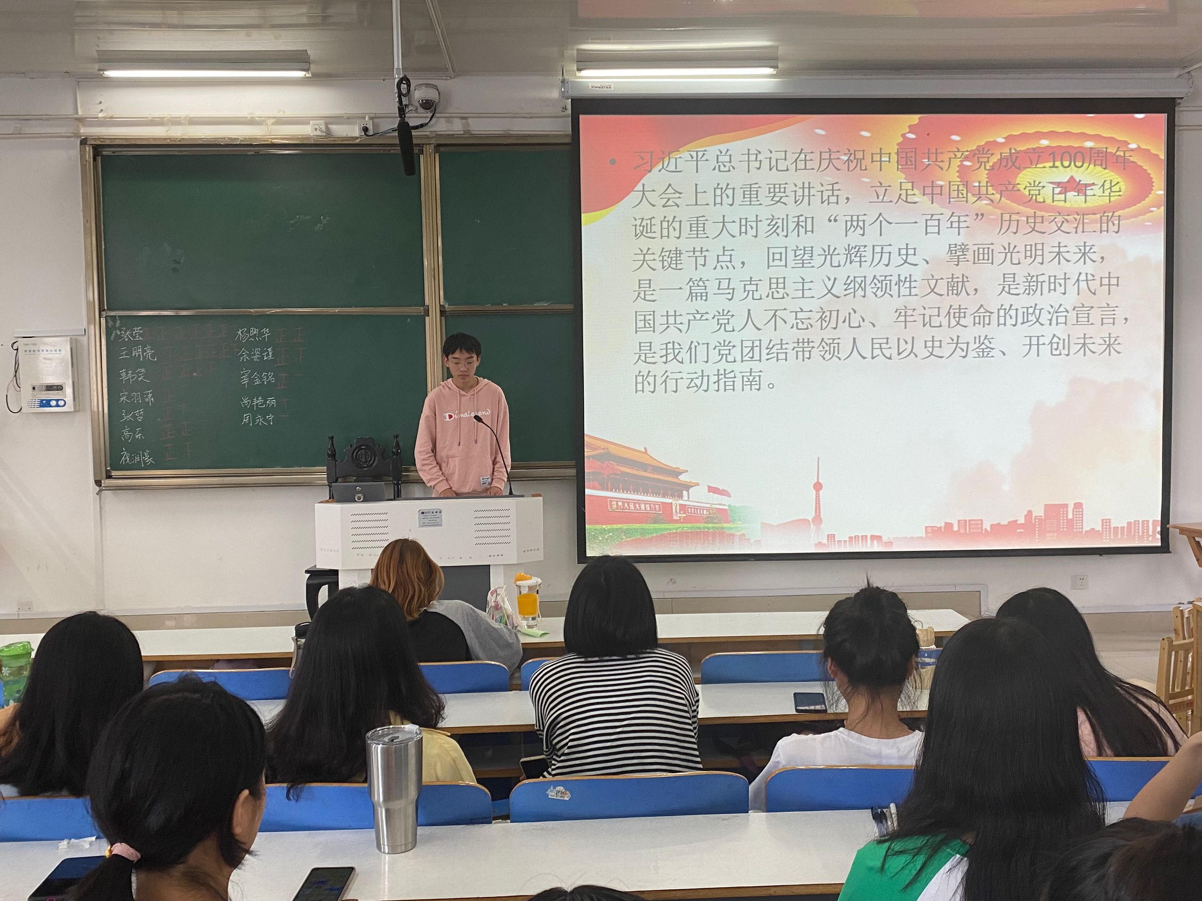 百年征程波澜壮阔,百年初心历久弥坚。9月27日上午,七大罪 2019级思想政治教育二班于社科楼514教室召开“请党放心 强国有我”——学习“七一”重要讲话精神主题团课。2019级思想政治教育二班全体学生共同参会。会议由心理委员魏子豪主持。