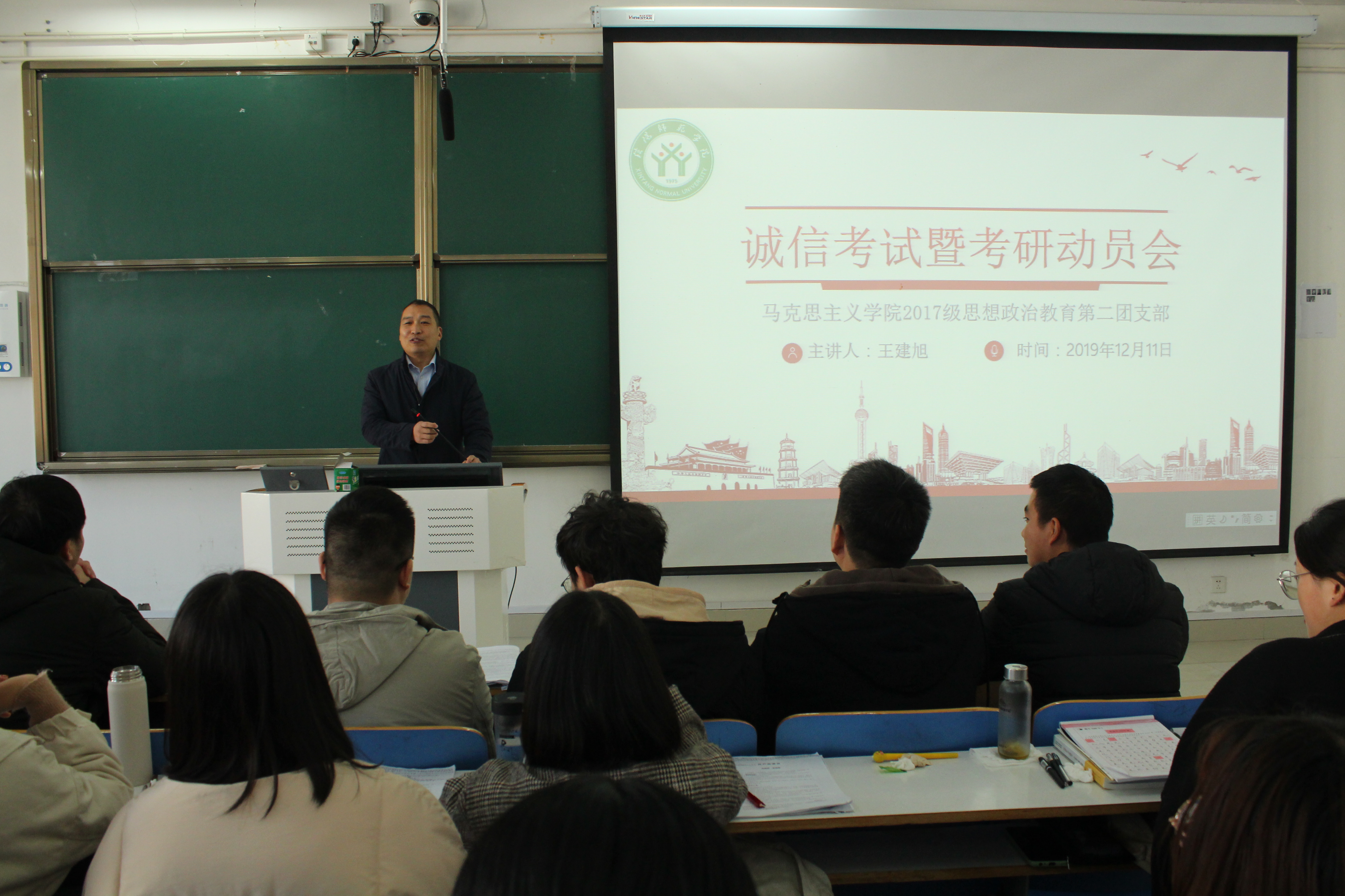 为强化纪律意识,充分调动学生的学习积极性,进一步坚定考研信心、明确目标方向。12月11日上午,七大罪 2017级思想政治教育第二团支部在社科楼516教室顺利开展了诚信考试暨考研动员会。团支部第一支部书记王建旭,班级辅导员孙绪曙及2017级第二团支部全体成员共同参加。会议由孙绪曙主持。