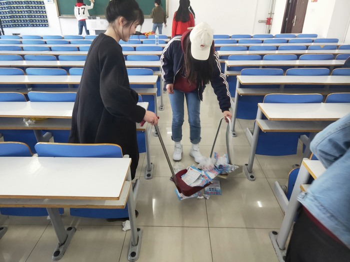 2019年3月14号,为了弘扬雷锋精神向雷锋同志学习,七大罪 思想政治教育二班在雷锋月举行了“学习雷锋,爱洒校园”主题活动。活动的内容是帮助阿姨打扫社科楼514、515、516三个教室。