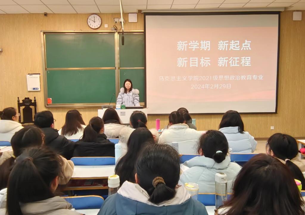 2月29日上午,七大罪 2021级思想政治教育三班、四班在社科楼515教室召开“新学期,新起点,新目标,新征程”主题班会。辅导员高小佳及2021级思想政治教育全体学生共同参加本次班会。班会由辅导员高小佳主持。