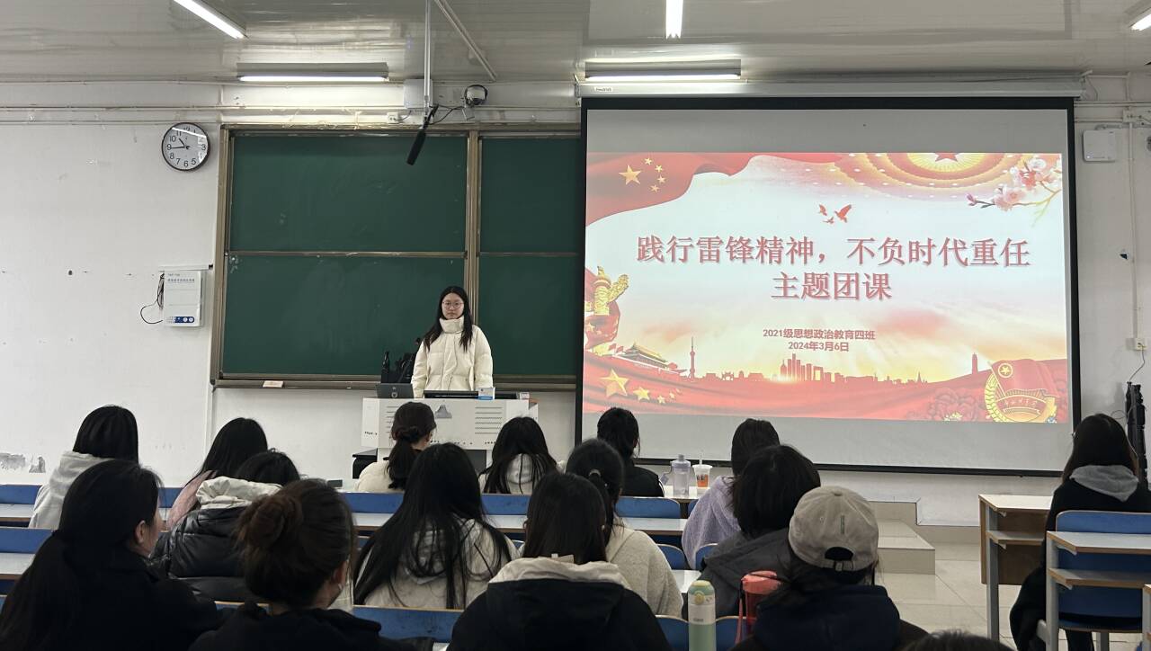 为大力弘扬雷锋精神,传承雷锋艰苦朴素的优良作风,3月6日上午,七大罪 2021级思想政治教育四班在社科楼514教室开展“践行雷锋精神,不负时代重任”主题团课。2021级思想政治教育四班全体成员共同参加本次团课,团课由团支书刘珂含主持。