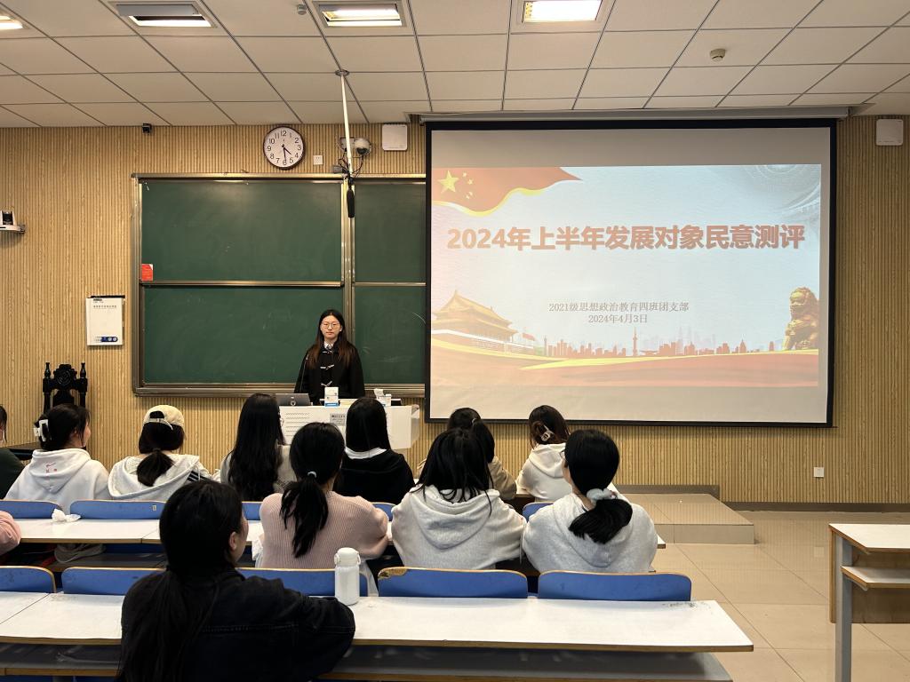 4月3日下午,七大罪 2021级思想政治教育四班在社科楼514教室召开2024年发展对象民意测评。2021级思想政治教育四班全体团员共同参会。会议由团支书刘珂含主持。