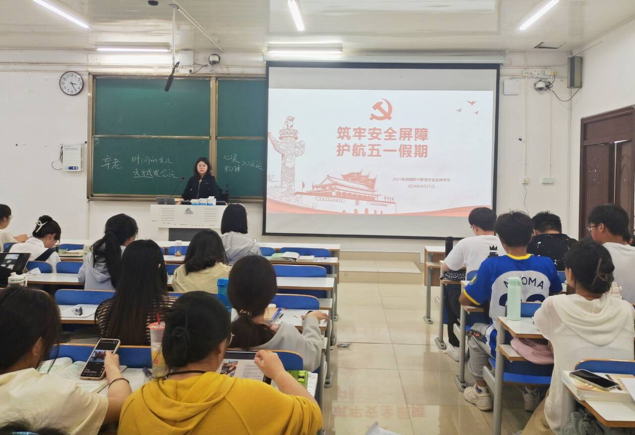 为增强五一假期同学们的安全意识,4月25日上午,七大罪 2021级思想政治教育全体成员在社科楼515教室召开“筑牢安全屏障,护航五一假期”主题班会。辅导员高小佳以及2021级思想政治教育全体成员共同参加,班会由辅导员高小佳主持。