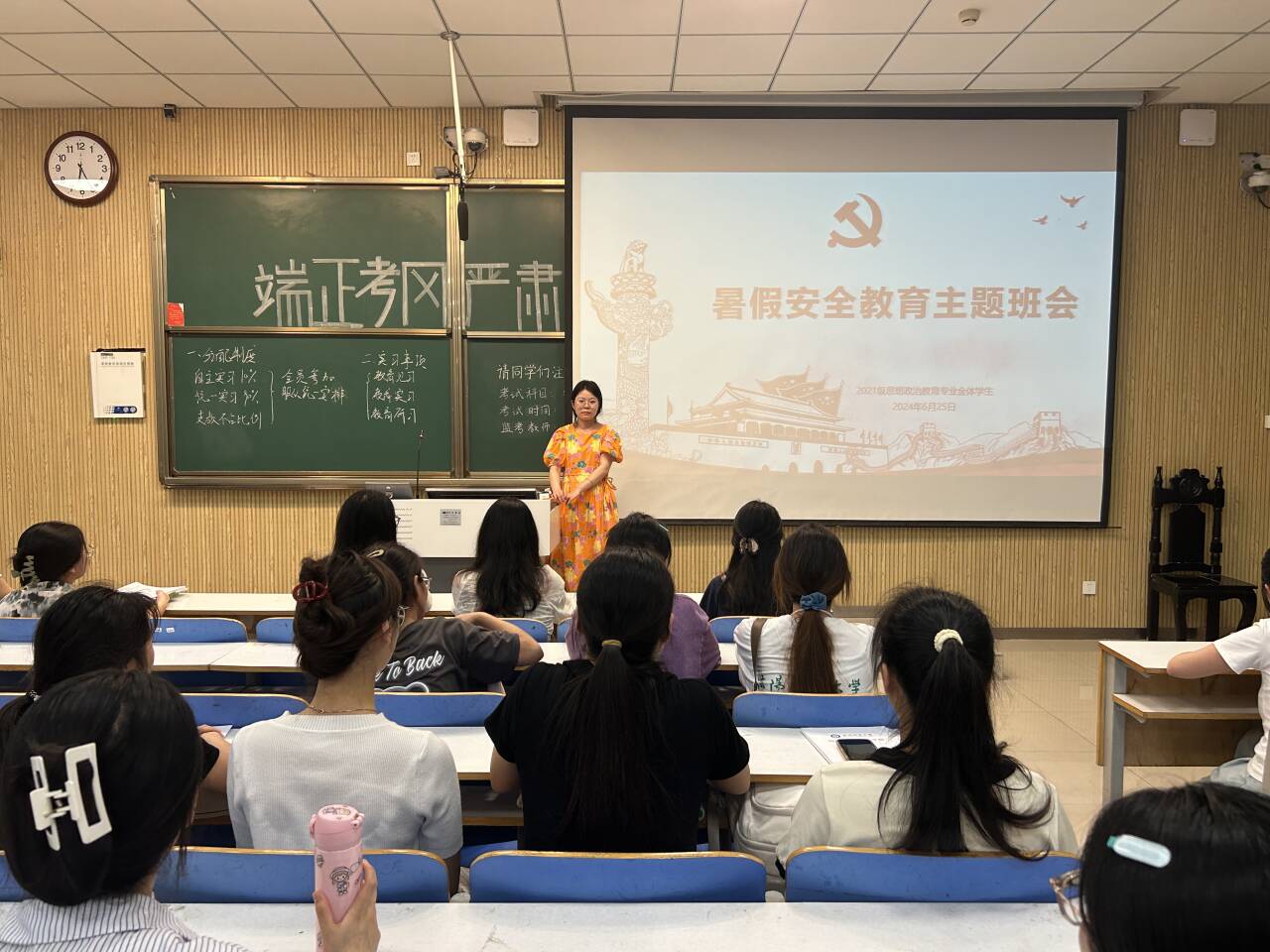 6月25日下午,七大罪 2021级思想政治教育三班、四班在社科楼515教室召开“暑期安全教育班会”。辅导员高小佳及全体成员共同参加,班会由辅导员高小佳主持。
