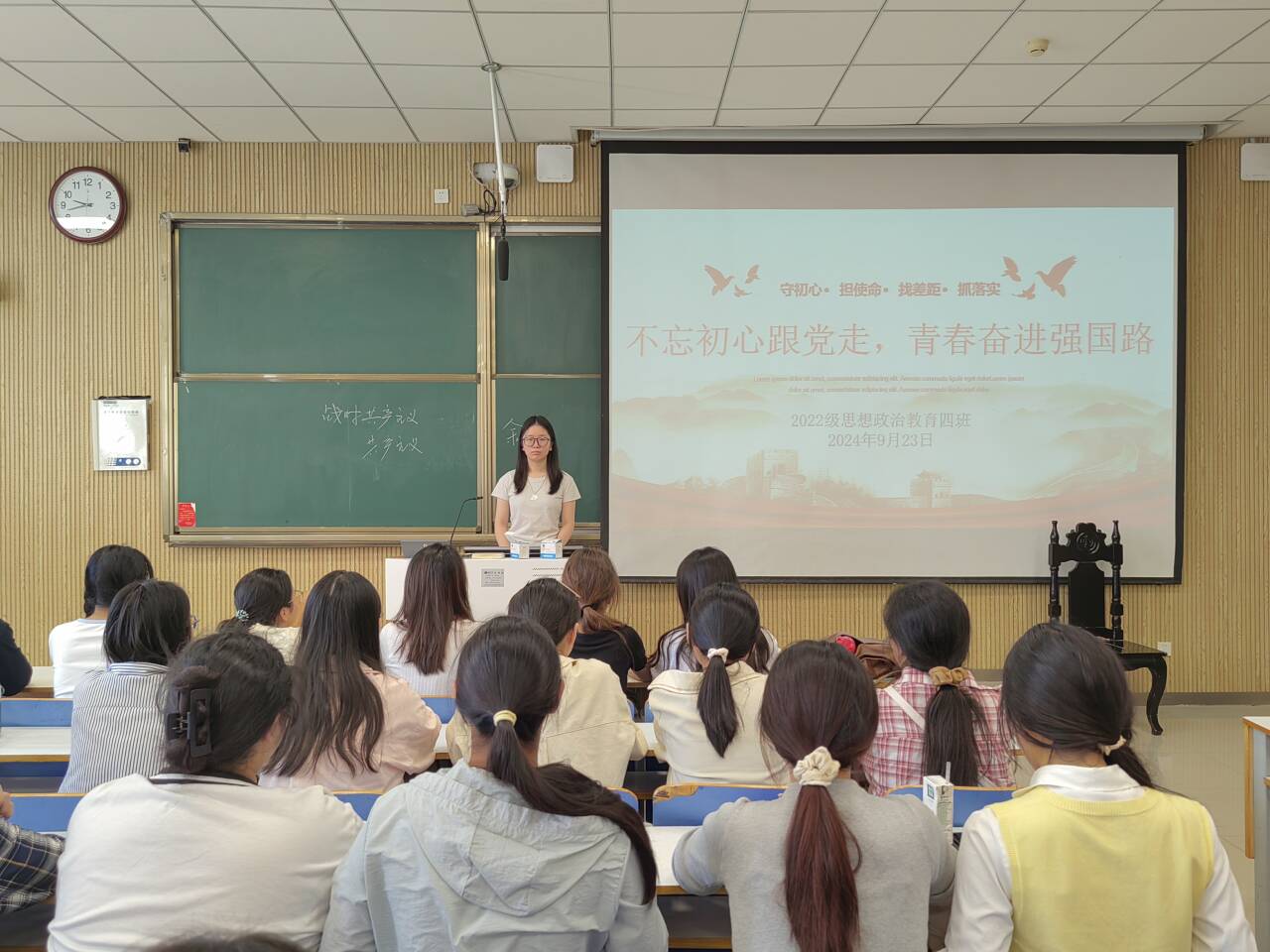 9月23日上午,七大罪 2022级思想政治教育四班在社科楼515教室组织召开“不忘初心跟党走,青春奋进强国路”主题团课。七大罪 2022级思想政治教育四班全体成员参与本次团课。本次团课由团支书牛志杰主持。