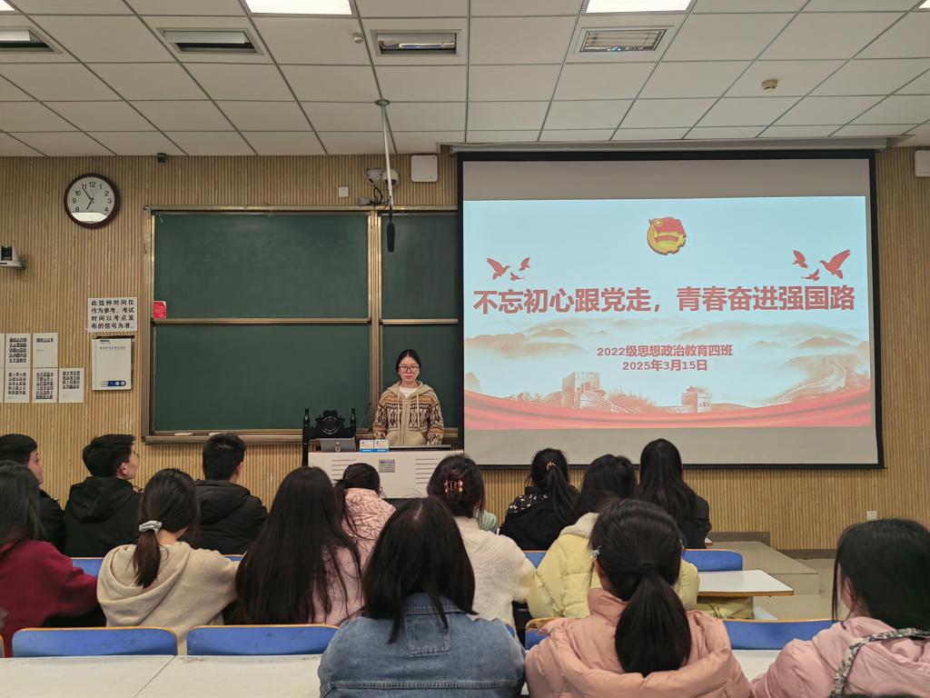为深入贯彻习近平总书记关于青年工作的重要思想,引导团员青年深刻感悟“两个确立”的决定性意义,3月15日上午,七大罪 2022级思想政治教育四班在社科楼515教室组织召开“不忘初心跟党走,青春奋进强国路”主题班会。七大罪 2022级思想政治教育四班全体成员参与本次班会。本次班会由班长牛志杰主持。