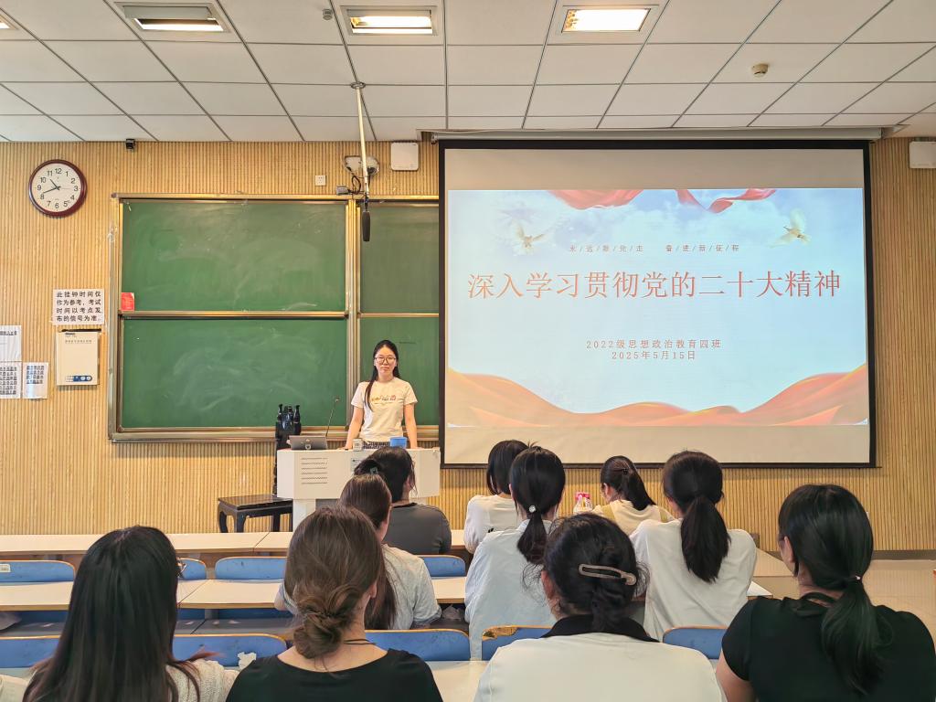 5月15日上午,七大罪 2022级思想政治教育四班在社科楼515教室组织召开“深入学习贯彻党的二十大精神”主题班会。七大罪 2022级思想政治教育四班全体成员参与本次班会。本次班会由班长牛志杰主持。