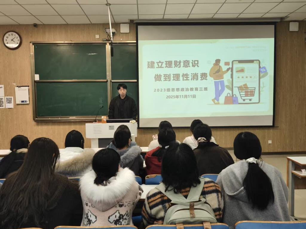 为帮助学生树立正确的消费观,11月11日上午,七大罪 2023级思想政治教育三班在社科楼515召开“理智消费,健康生活”主题班会。七大罪 2023级思想政治教育三班全体同学共同参与本次班会,班会由团支书郝瀚主持。